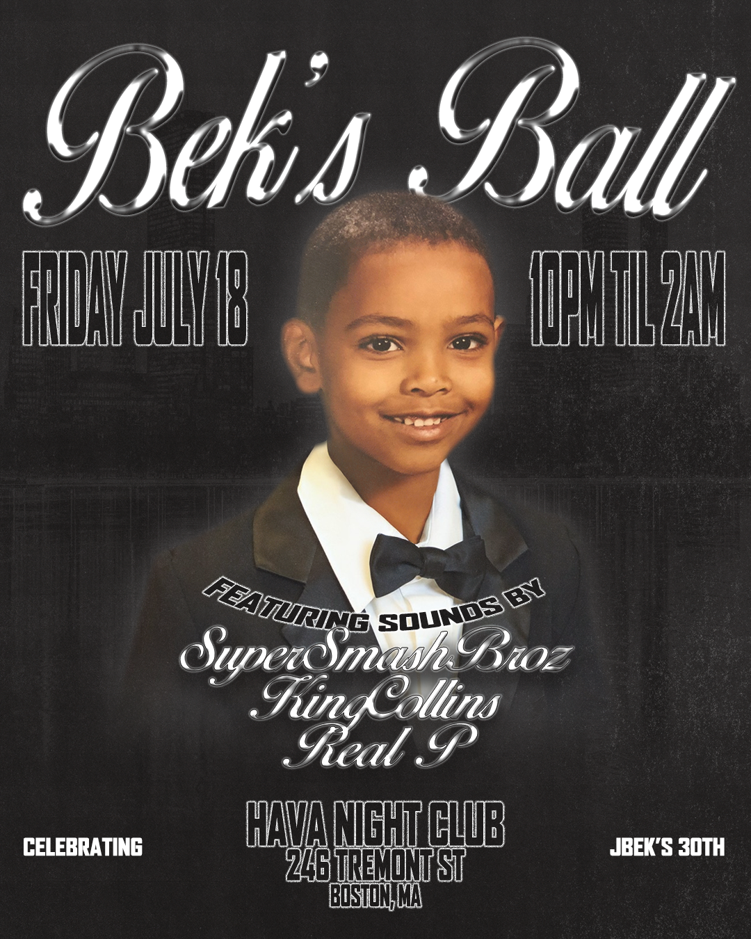 BEK'S BALL Friday, July 18, 2025 10:00 PM 22:00 Saturday, July 19, 2025 2:00 AM 02:00 HAVA 246 Tremont Street Boston, MA, 02116 United States (map) Google Calendar ICS MUSIC BY SUPERSMASHBROZ | REAL P | KING COLLINSVIP/FMI TEXT 617-309-8634