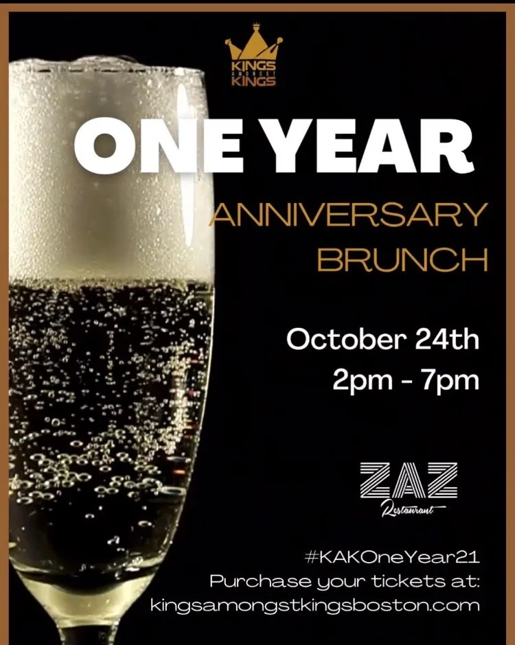 Kings Amongst Kings Brunch Sunday, October 24, 2021 2:00 PM 7:00 PM 14:00 19:00 ZaZ Restaurant 1238 River Street Boston, MA, 02136 United States (map) Google Calendar ICS VIBES BY: AMEROBRUNCH TABLE INQUIRY TEXT 617-309-8634 BUY TICKETS